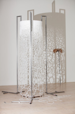 my body is not another patriarchy reproductive machine, Installation, Bügelperlen, Kalkstein, Stahl, 270x170x170 cm