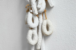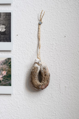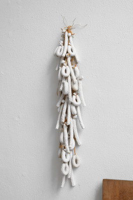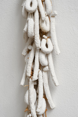 Aufgehängt, Detail_2019, Installation, Gips, Garn, 100x25x15cm